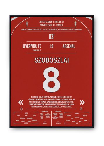 Rendeld meg a 30×40 vagy 40×50 cm-es posztert, és tedd örök emlékké Szoboszlai Dominik anfieldi varázslatát!